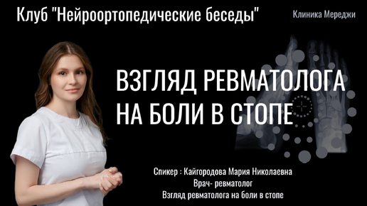Нейроортопедические беседы. Боль в стопе. Взгляд ревматолога. Кайгородова Мария Николаевна, врач-ревматолог Клиники Мереджи.