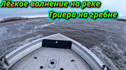 На реке небольшая волна. Лодка Триера медленно пересекает реку