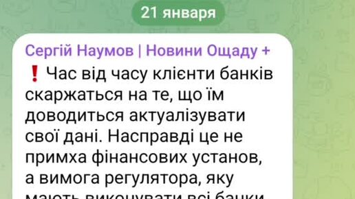ОЩАДБАНК начал проверку всех клиентов.Необходимо актуализировать свои анкетные данные