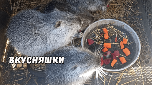 Подкармливаю нутрят-любимчиков вкусняшками. Погодные причуды января: потеплело.