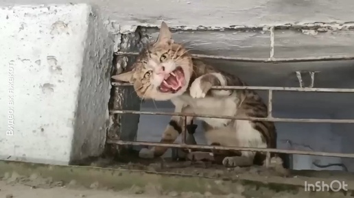 Кошечка застряла в металическом заборе! За жизнь малышки боролись добродушные спасатели!