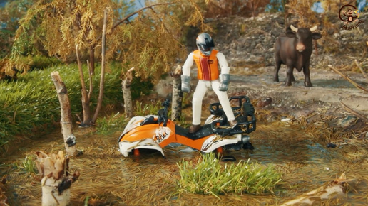 Мультик про машинки. Трактор лесовоз John Deere, квадроцикл тонет в болоте. Bruder. МанкиМуль
