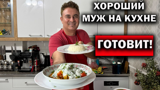 Муж турок готовит ужин: тушеные кабачки с овощами, рис салат #рецепты