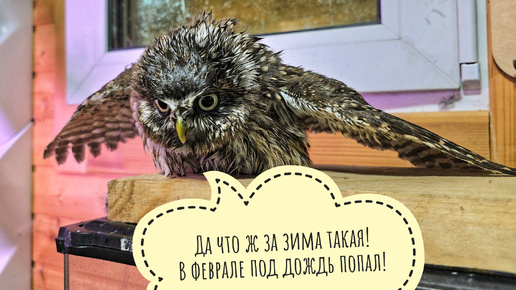 Отмовение маленькой вредной совы: намочили сыча Лучика, теперь сушить надо