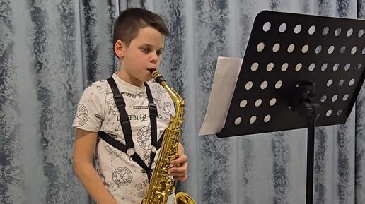 Начинающий саксофонист играет Besame mucho