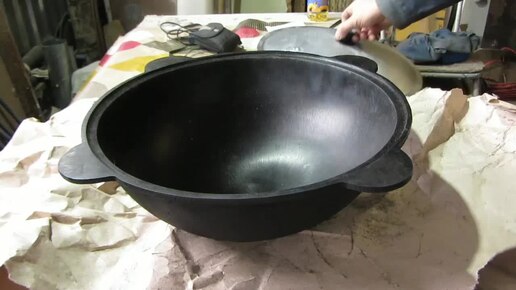 Обжигаем и прокаливаем новый чугунный казан на 12 литров.