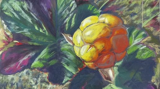 Рисую морошку сухой пастелью