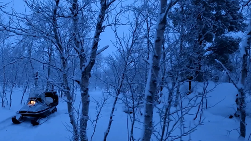 ЧАСТЬ-2. ВКУСНАЯ СОЛЯНКА НА УЖИН И НОЧЬ В ТЕПЛОЙ КРОШЕЧНОЙ ИЗБЕ В ЛЕСУ В ТУНДРЕ.УТРО СЛЕДУЩЕГО ДНЯ И ПОЕЗДКА НА ОЗЕРО ГДЕ КЛЕВАЛА РЫБА.
