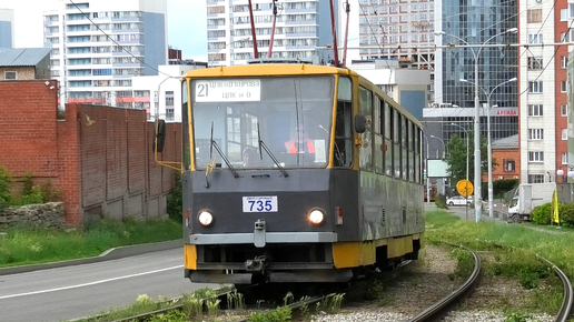 Трамвай Екатеринбурга Tatra T6B5SU борт. №735 маршрут 21 следует по улице Радищева