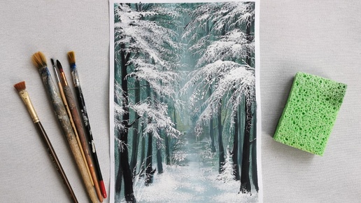 Как обычной губкой нарисовать зимний лес: простая техника для начинающих, заменяющая мастерство