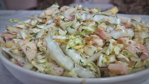 Салат "Красотка". Салат с пекинской капустой и копченой курицей
