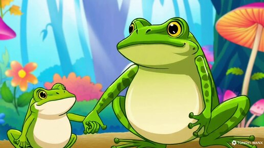 Веселые лягушки танцуют и веселятся радуют детишек заставляя улыбаться.