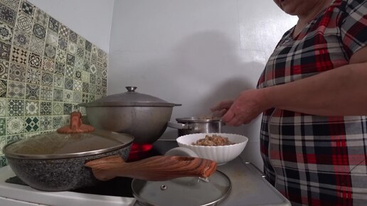 Готовлю ужин. Надо было сразу ее добавить. Гречку видели раз в месяц. До сих пор удивляюсь из чего накрывали праздничный стол.