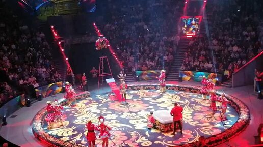 Отрывок из представления Большого московского цирка с участием акробатов.