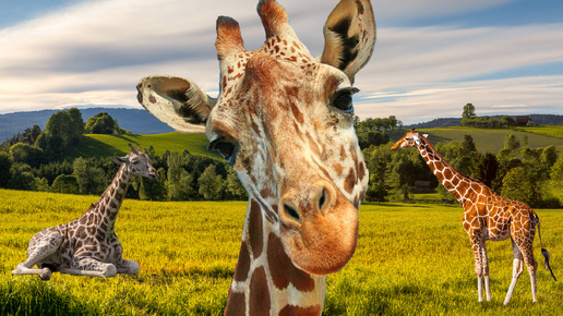 Жираф в природе [Звуки жирафа] - Насекомышки