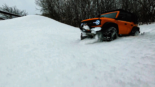 Покатали возле дома на радиоуправляемом Ford Bronco HB Toys R1001 по мокрому снегу.