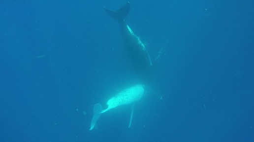 Любовь и песня полная страсти . Молодая пара горбатых китов подсмотреренная в укромном уголке.