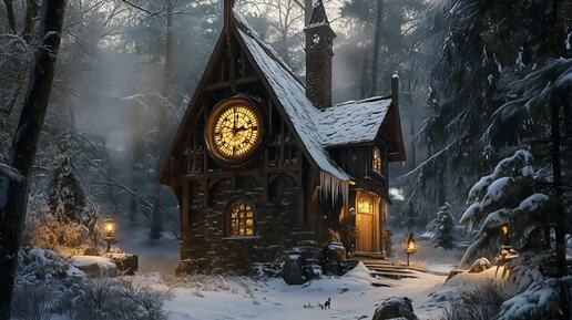 Старинная лесная часовня зимней ночью | Уютная атмосфера и спокойная фортепианная музыка