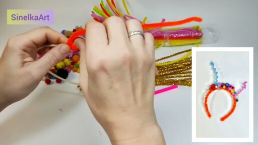 Яркий ободок из синельной проволоки своими руками / Поделки для девочек