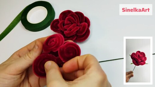 Бордовая роза из синельной проволоки #туториал / Цветы своими руками