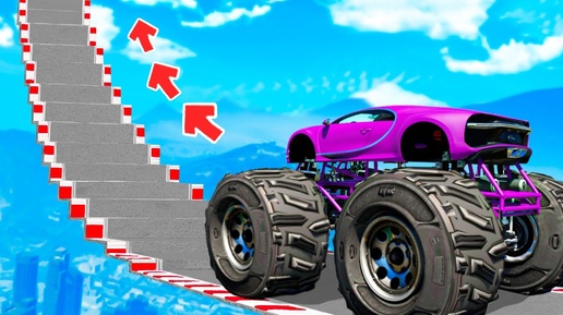 СМОЖЕТ ЛИ ОГРОМНАЯ БУГАТТИ ПРОЕХАТЬ ПО СТУПЕНЬКАМ ЛЕСТНИЦЫ В ГТА 5! ЭКСПЕРИМЕНТ GTA 5 ОНЛАЙН