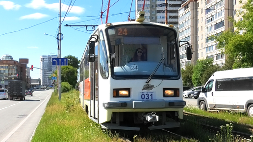 Трамвай Екатеринбурга УТМ 71-405-11 борт. №031 маршрут 24 следует по улице Технической
