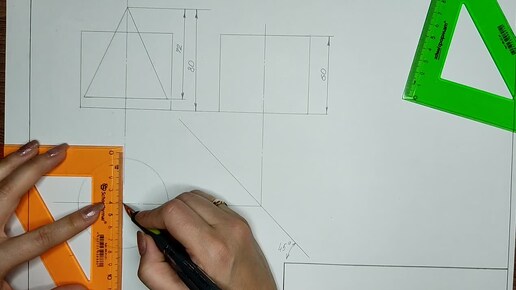 Задание 54. Чертеж ЛИНИИ ПЕРЕСЕЧЕНИЯ цилиндра и призмы трехгранной Часть 1