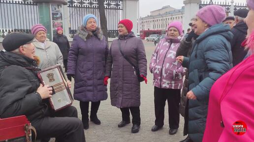 Вот как под гармоник поют в Гомельском парке, душевные посиделки, и звонкие голоса исполнительниц, народное творчество.