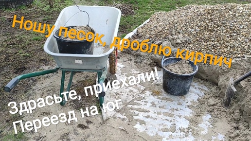 Таскаю песок. Дроблю кирпич и бетон для стяжки.