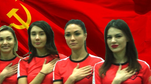 "Россия с нами не пропадет". Гимн СССР на параде женской футбольной лиги. Один из рабочих моментов съемок.