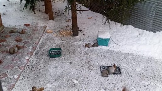 Беличья молодёжь пришла на обед. Карта на корм животным 2202 2062 6013 7323.