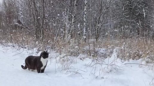 Снежная прогулка Розы🌹😻🌹#в мире животных#кошечка#снегопад