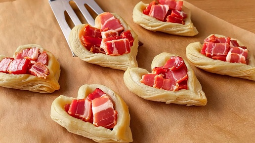 Рецепты ко Дню святого Валентина. У вас есть слоёное тесто и бекон? Приготовьте эту замечательную закуску.