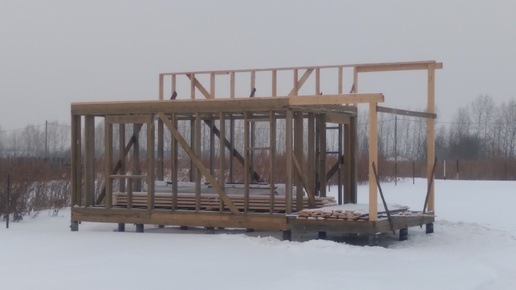 Хозблок 4х6. Аттиковая стена, мауэрлат, опоры на крыльце. Каркасный дом своими руками. /Усадьба/