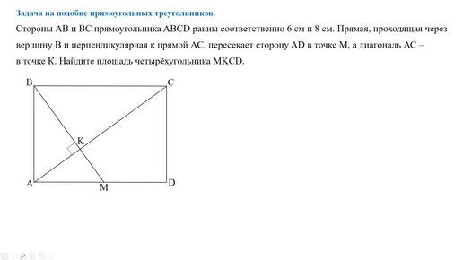Стороны АВ и ВС прямоугольника ABCD равны соответственно 6 см и 8 см