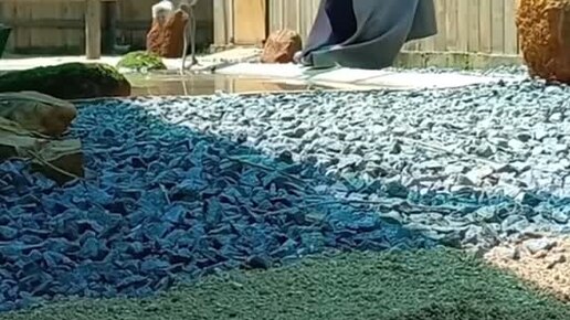 Сотрудник зоопарка учит маленького журавля пить