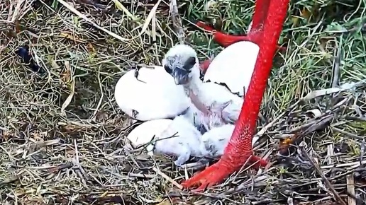 Кормление птенцов аиста в гнезде