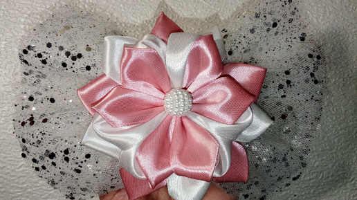 Как сделать нежный праздничный бант-цветок на заколке-автомат.
