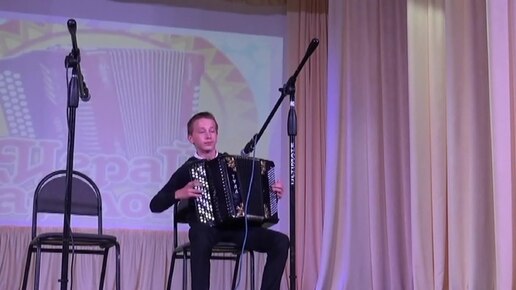 исп. двух пьес на баяне: "Циганская пляска" и матросская пляска "Яблочко".