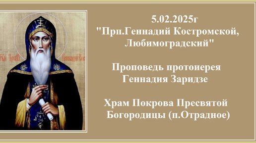 5.02.2025г "Прп.Геннадий Костромской, Любимоградский" Проповедь протоиерея Геннадия Заридзе. Храм Покрова Пресвятой Богородицы (п.Отрадное)