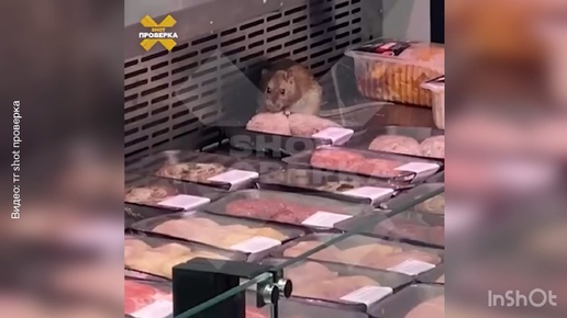 Огромная крыса поедает котлетку в супермаркете Владивостока!