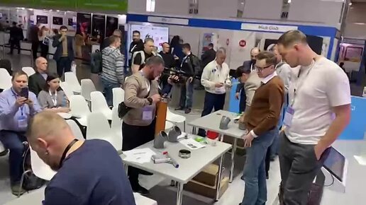 Конкурс на Аквафлейм: кто быстрее соединит трубу с отводами с помощью хомутов Рапид.
