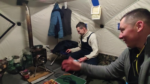 ЗИМНЯЯ РЫБАЛКА НА КАМЕ.ЛОВЛЯ СУДАКА НА ЖЕРЛИЦЫ И БЕРША НА ТЮЛЬКУ.ГОЛЮШУРМА.ПАЛАТКА И ПЕЛЬМЕНИ.