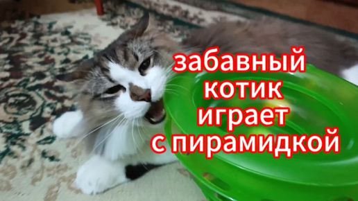 ЗАБАВНЫЙ КОТИК ИГРАЕТ С ПИРАМИДКОЙ.