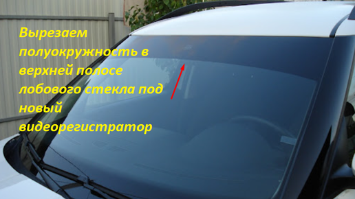Вырезаем полуокружность в верхней полосе лобового стекла под новый видеорегистратор