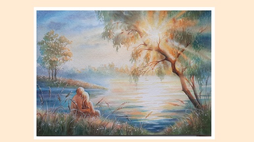 Акварельная картина "Закат для двоих"