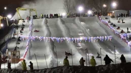 Тюбинговая горка на Крылатских холмах. Зимние развлечения в Москве, когда есть снег.
