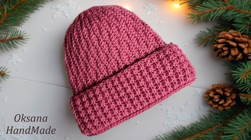 💗Шапка крючком с отворотом. WOMEN'S CROCHETED HAT