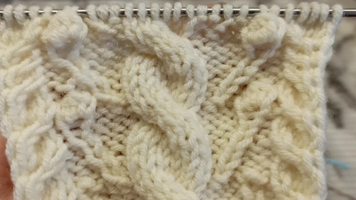 Узор спицами "Переплетения с косой по центру, вяжем вмести каждый ряд, пошаговое видео для начинающих