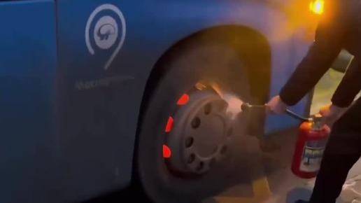 Жаркое утро у автобуса: водителю пришлось тушить горящее колесо